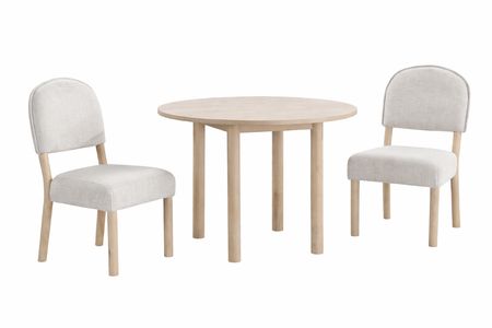 Finished in a casual California-inspired washed oak, this set brings breezy, grown-up style to any playroom or dining space. Durable, stylish, and kid-friendly, Gabby gives little ones a seat at the table—just like the adults.