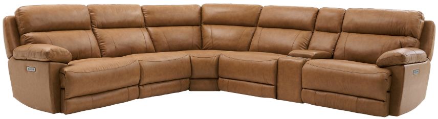6-Piece Set includes the LAF Leather Dual-Power Recliner, RAF Recliner, Power Console, Armless Chair, Armless Recliner and Wedge