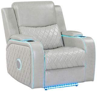 Relax in modern style with the Luna ice, upholstered in smooth, charcoal-gray vegan leather featuring an elegant argyle-quilted pattern on the seats, backs, and sides for a refined, high-end look. Effortless power recline lets you adjust the back and footrest to your perfect position, while built-in speakers create immersive sound.Read More