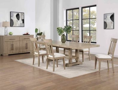 Napa is a grandly scaled California casual collection with ample dining space for everyone. With its beautiful plank-effect top and two 18-inch leaves, it can accommodate up to ten people and offers a light and airy weathered sand finish.Read More