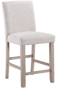 This counter stool measures 23 inches wide, 19 inches deep, and 40 inches tall, with a 24-inch seat height suited for counter surfaces. It features a tan wood frame, cushioned seat, and gray polyester upholstery, offering durability, comfort, and everyday practicality for family meals or gatherings.Read More