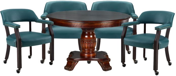 Captain chair has arms, casters, nailhead trim and is shown in teal, also available in other colors