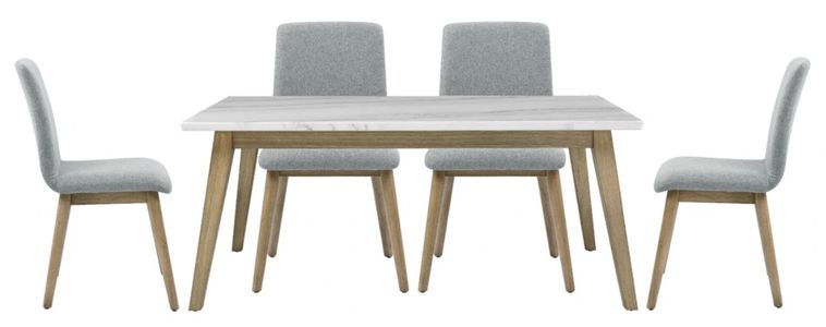Experience the essence of minimalism, functionality, and beauty with the Vida 5-Piece Marble Dining Set, which showcases the sleek design of mid-century modern and Scandinavian styles. The centerpiece of the set is a stunning 72-inch marble top table, supported by canted burnished blonde solid hardwood legs, creating a marvel of elegant design simplicity.Read More