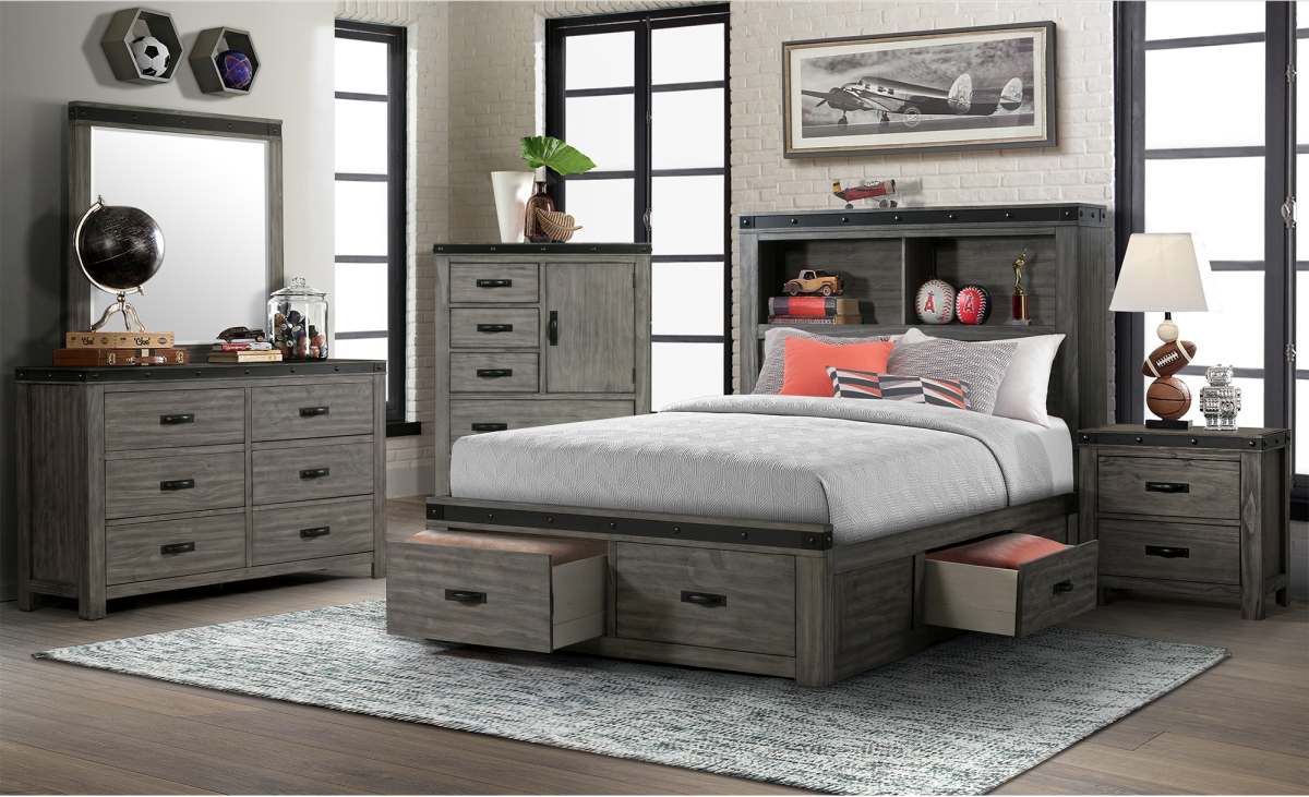 Includes Twin Storage Bed, Dresser, Mirror, Chest and 1 Nightstand only. Other items sold separatley.